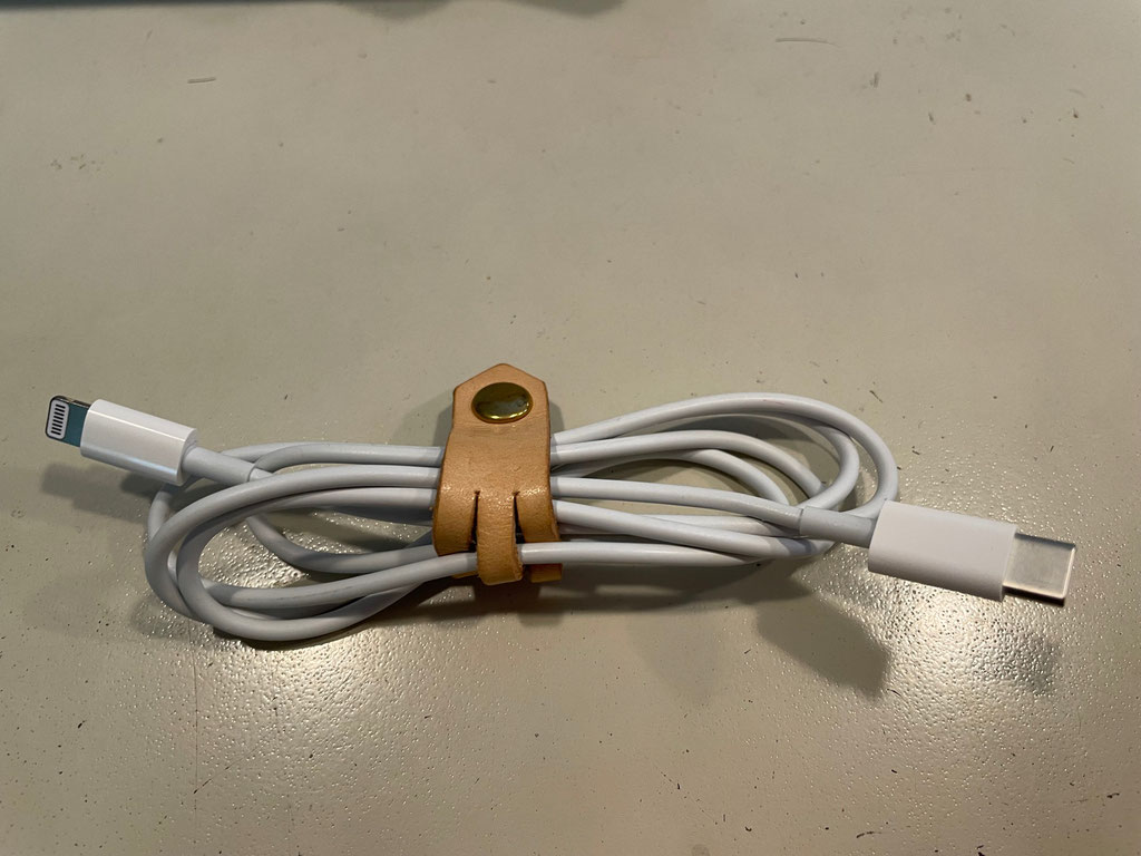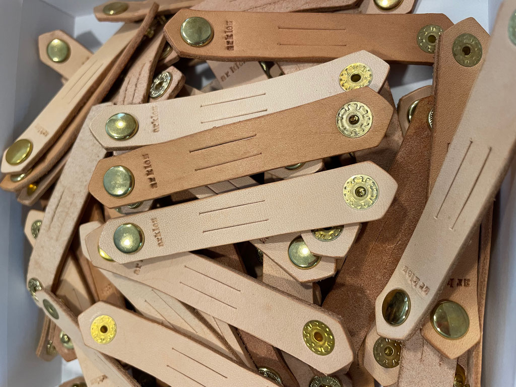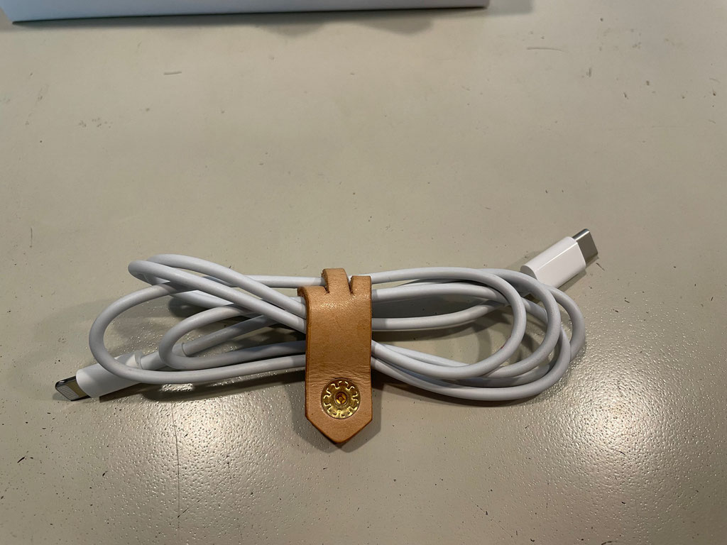 今回は10周年の記念品として、「コードクリップ」という充電器等のコードやイヤホンコードをまとめる為の革製クリップを、ご来店されたお客様に差し上げることにしました。