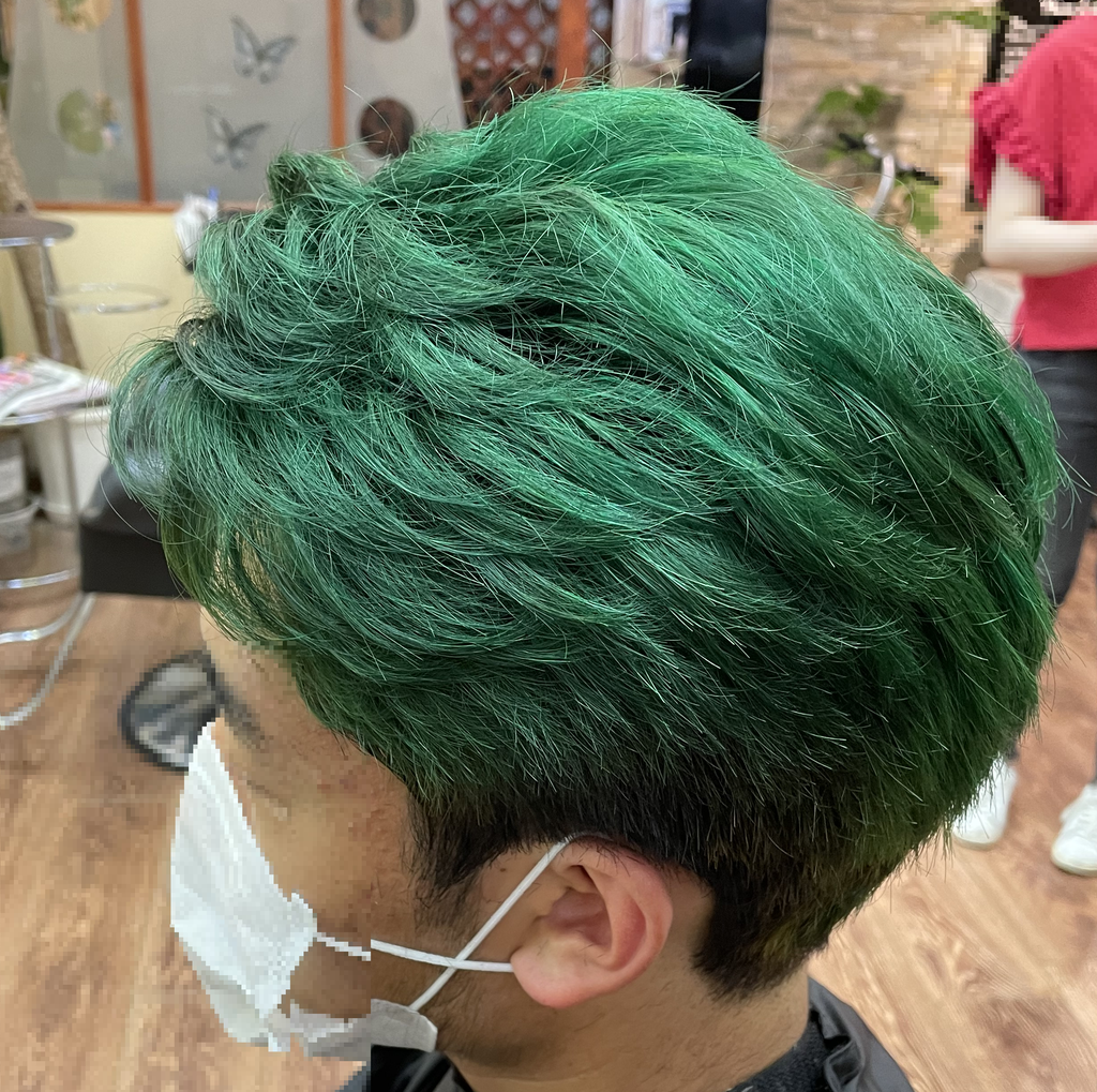 緑、青、赤、朱色、黄色を毛髪全体に入れたい、前頭部分に入れたい、サイドに入れたい、表面に入れたい、内側に入れたい、グラデーションカラーにしたい、、。