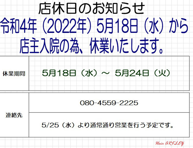 美容室アークルズをご愛顧いただき、誠にありがとうございます。